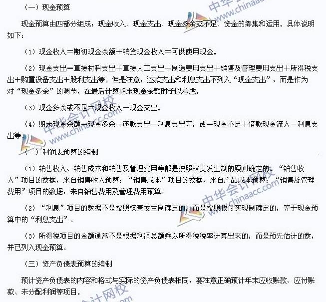 财务预算的编制:
