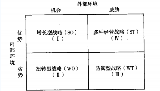 (3)O——企业外部环境的机会,如政府支持、高新技术的应用、良好的购买者和供应商关系等;