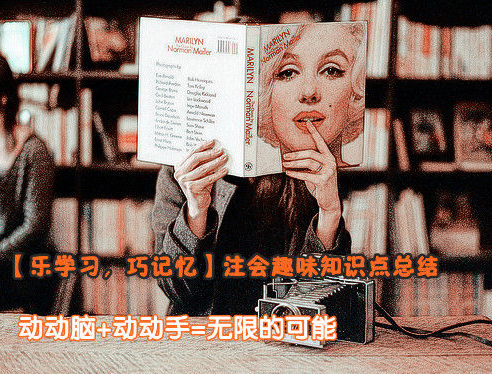 现在我们进行一场乐学习、巧记忆趣味知识点总结活动:动动脑+动动手=无限的可能,你可以写出你平时巧记忆的总结、比喻知识点;也可以把你就有印象的老师平时讲课时总结的巧记忆方法写下来;或是你与小伙伴讨论学习时不经意跑出的学习灵感……这些你都可以写出来与大家分享,乐学习、巧记忆,让学习变得更容易!点击参与活动>>