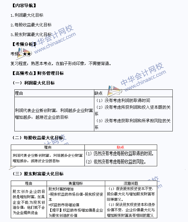 我们一起来学习2013注册会计师《财务成本管理》高频考点:财务管理目标。本考点属于《财务成本管理》第一章财务管理概述第二节财务管理的目标的内容。