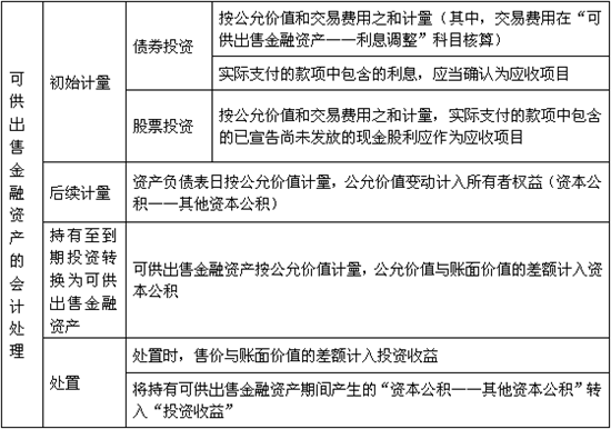 可供出售金融资产的会计处理