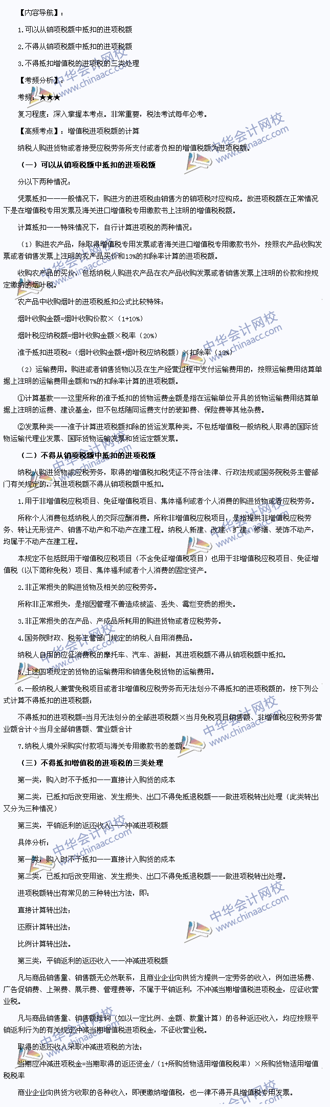 我们一起来学习2013注册会计师《税法》高频考点:增值税进项税额的计算。