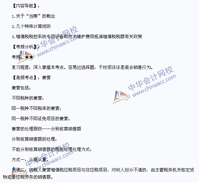 我们一起来学习2013注册会计师《税法》高频考点:兼营。本考点属于《税法》第二章增值税第四节一般纳税人应纳税额的计算的内容。