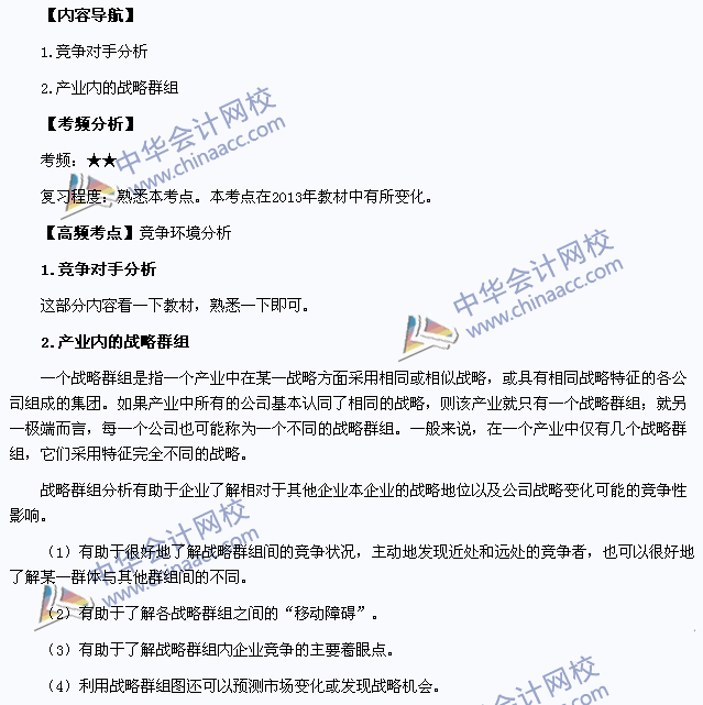 我们一起来学习2013注册会计师《公司战略与风险管理》高频考点:竞争环境分析。本考点属于《公司战略与风险管理》第二章战略分析第一节企业外部环境分析的内容。