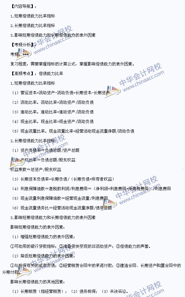 我们一起来学习2013注册会计师《财务成本管理》高频考点:偿债能力比率。本考点属于《财务成本管理》第二章财务报表分析第二节财务比率的内容。