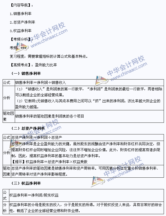 我们一起来学习2013注册会计师《财务成本管理》高频考点:盈利能力比率。本考点属于《财务成本管理》第二章财务报表分析第二节财务比率的内容。