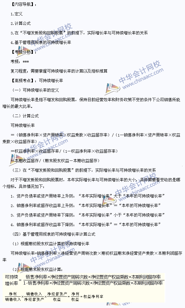 我们一起来学习2013注册会计师《财务成本管理》高频考点:可持续增长率。本考点属于《财务成本管理》第三章长期计划与财务预测第三节增长率与资金需求的内容。