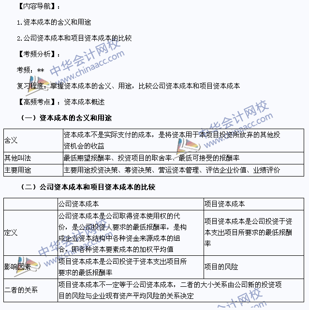 我们一起来学习2013注册会计师《财务成本管理》高频考点:资本成本概述。本考点属于《财务成本管理》第六章资本成本第一节资本成本概述内容。
