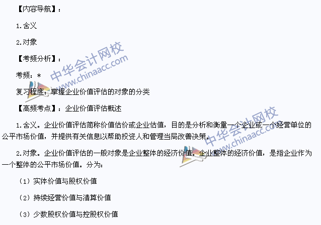我们一起来学习2013注册会计师《财务成本管理》高频考点:企业价值评估概述。本考点属于《财务成本管理》第七章企业价值评估第一节企业价值评估概述的内容。