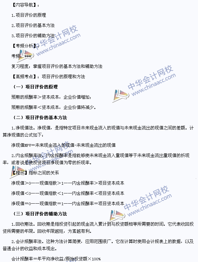 我们一起来学习2013注册会计师《财务成本管理》高频考点:项目评价的原理和方法。本考点属于《财务成本管理》第八章资本预算第一节项目评价的原理和方法的内容。