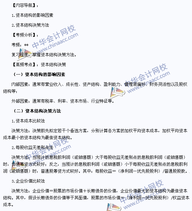 我们一起来学习2013注册会计师《财务成本管理》高频考点:资本结构决策。本考点属于《财务成本管理》第十章资本结构第三节资本结构决策的内容。