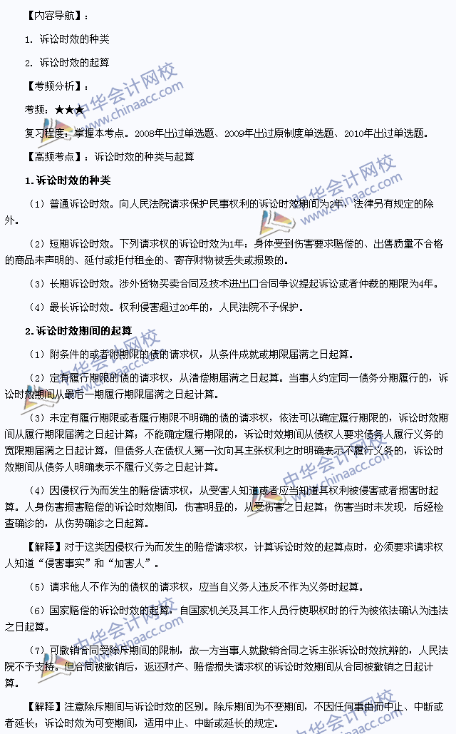 我们一起来学习2013注册会计师《经济法》高频考点:诉讼时效的种类与起算。本考点属于《经济法》第二章基本民事法律制度第三节诉讼时效制度的内容。