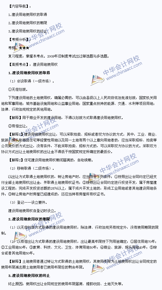 我们一起来学习2013注册会计师《经济法》高频考点:建设用地使用权。本考点属于《经济法》第三章物权法律制度第四节用益物权的内容。