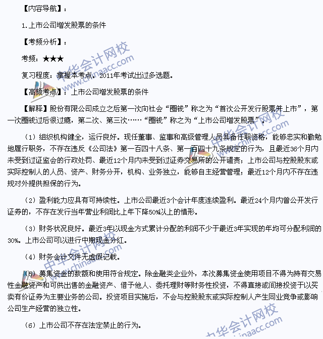 我们一起来学习2013注册会计师《经济法》高频考点:上市公司增发股票的条件。本考点属于《经济法》第六章证券法律制度第二节股票的发行的内容。