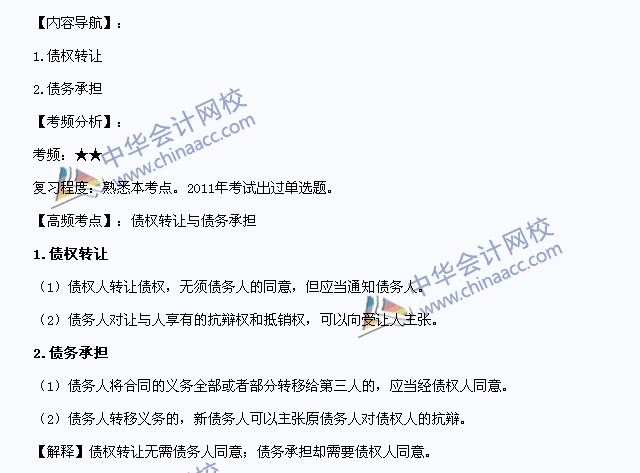 我们一起来学习2013注册会计师《经济法》高频考点:债权转让与债务承担。本考点属于《经济法》第四章合同法律制度第六节合同的变更与转让的内容。