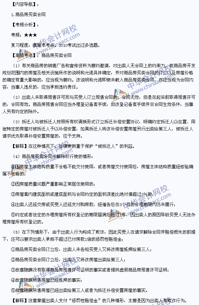 我们一起来学习2013注册会计师《经济法》高频考点:商品房买卖合同。本考点属于《经济法》第四章合同法律制度第九节几类主要的有名合同的内容。