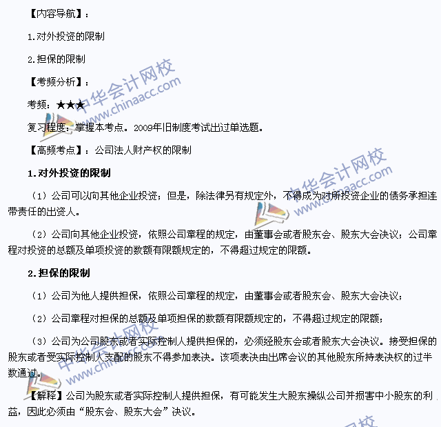 我们一起来学习2013注册会计师《经济法》高频考点:公司法人财产权的限制。本考点属于《经济法》第五章公司法律制度第三节公司法律制度概述的内容。