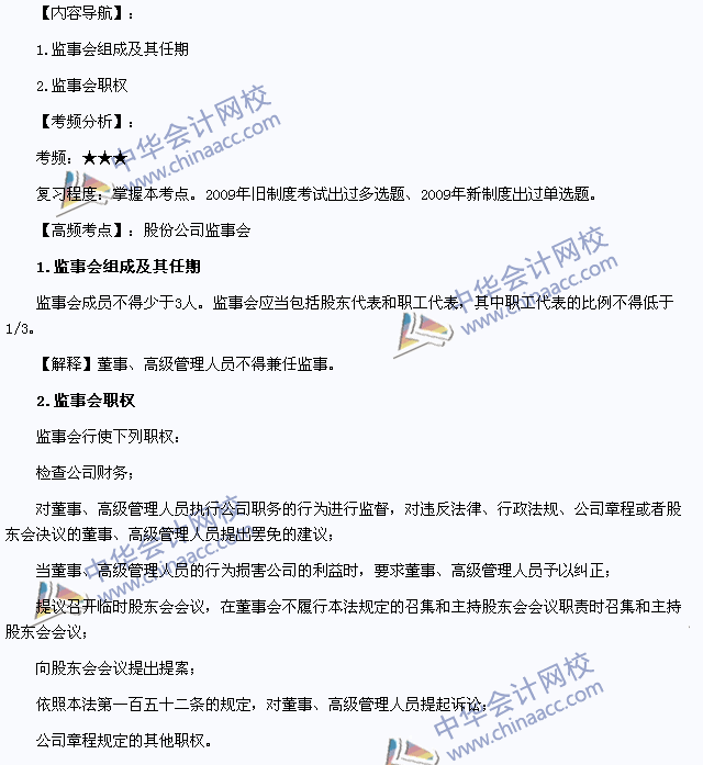 我们一起来学习2013注册会计师《经济法》高频考点:股份公司监事会。本考点属于《经济法》第五章公司法律制度第四节股份有限公司的内容。