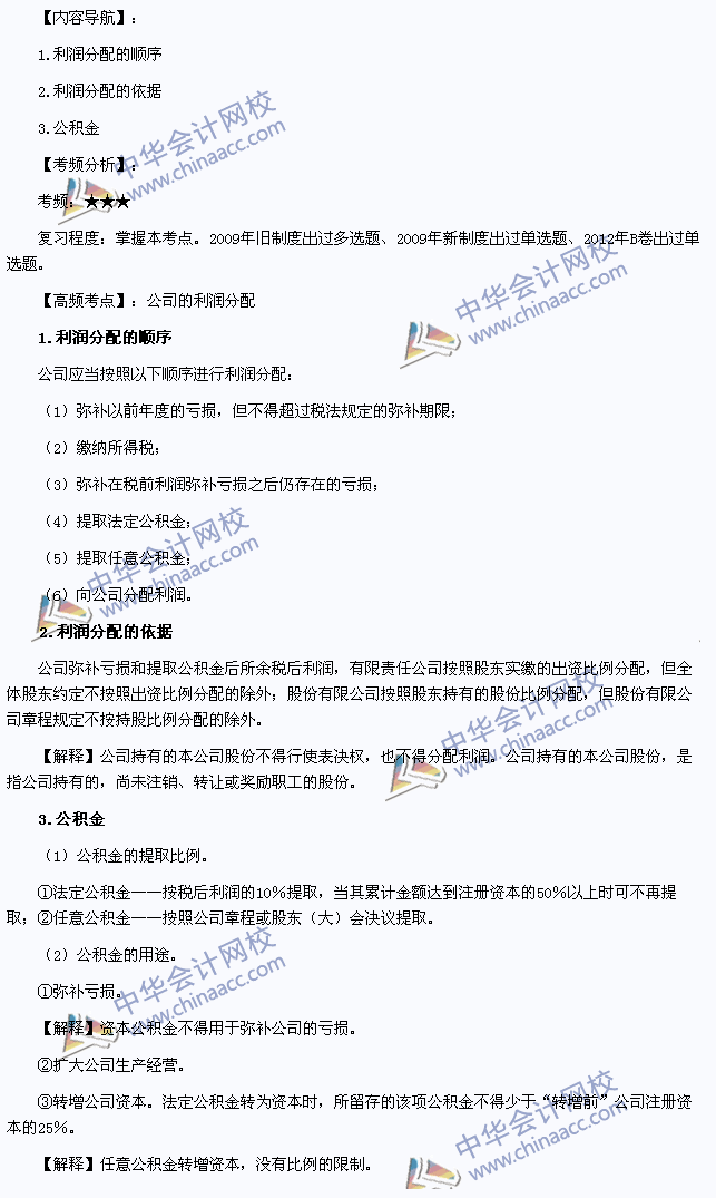 我们一起来学习2013注册会计师《经济法》高频考点:公司的利润分配。本考点属于《经济法》第五章公司法律制度第七节公司的财务会计的内容。