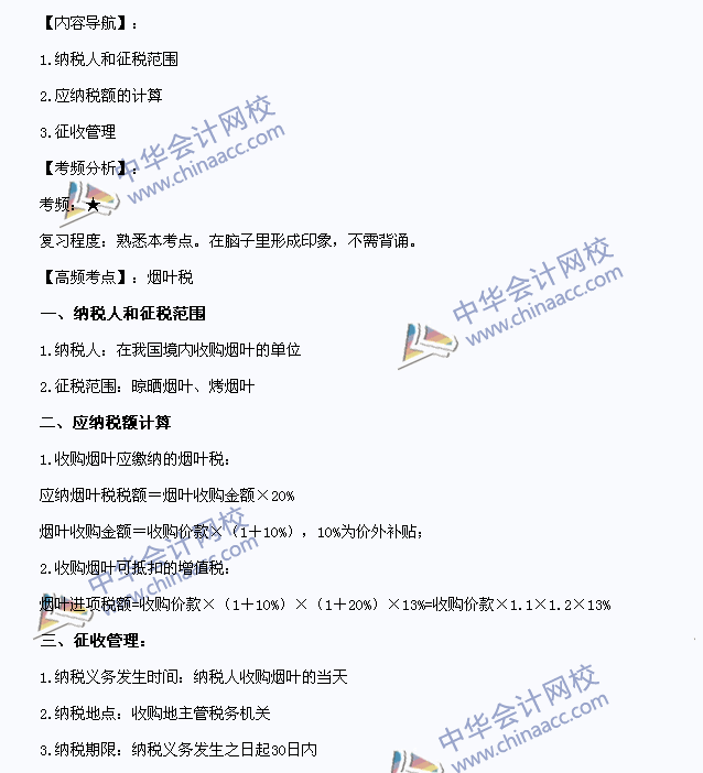 我们一起来学习2013注册会计师《税法》高频考点:烟叶税。本考点是《税法》第五章城市维护建设税法和烟叶税法第二节烟叶税法的内容。