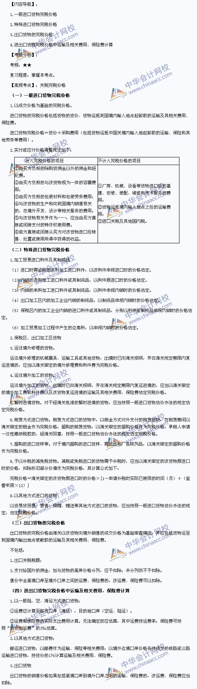 我们一起来学习2013注册会计师《税法》高频考点:关税完税价格。本考点是《税法》第六章关税法第三节完税价格与应纳税额的计算的内容。