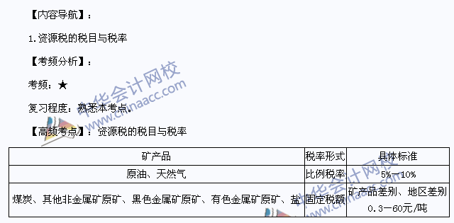 我们一起来学习2013注册会计师《税法》高频考点:资源税的税目与税率。本考点是《税法》第七章资源税法和土地增值税法第一节资源税纳税义务人、税目与税率的内容。