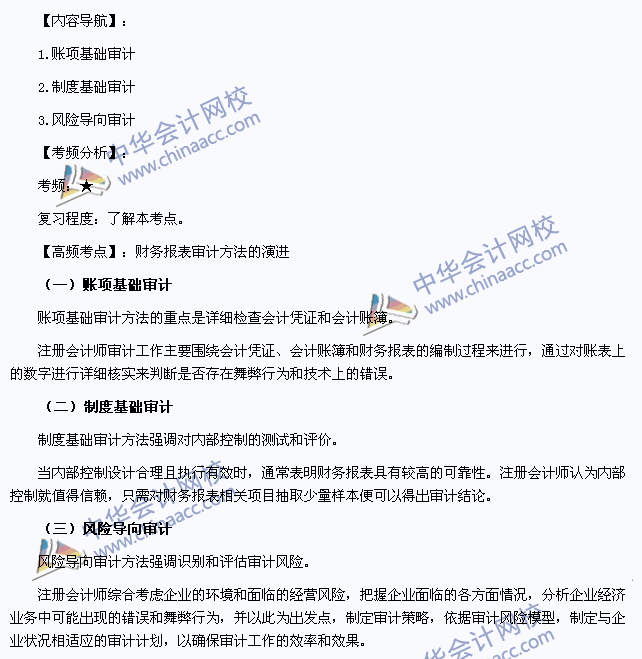 我们一起来学习2013注册会计师《审计》高频考点:财务报表审计方法的演进。本考点属于《审计》第一章注册会计师审计职业特点第二节注册会计师的性质的内容。