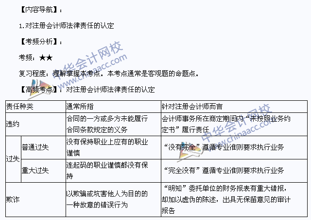 我们一起来学习2013注册会计师《审计》高频考点:对注册会计师法律责任的认定。本考点属于《审计》第二章注册会计师的法律责任第一节注册会计师的法律环境的内容。