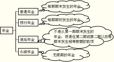 年金,是指等额、定期的系列收支。具有两个特点:一是金额相等;二是时间间隔相等。