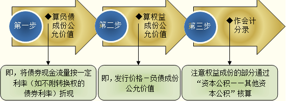 权益成份的计量——按发行价格总额扣除负债成份初始确认金额后的金额确定权益成份的初始确认金额。