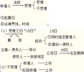 | 裁定受理 | ①人民法院受理破产申请的,应当自裁定作出之日起5日内送达申请人。 |