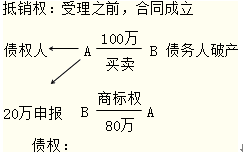 【举例】A企业与B企业签订了100万元的货物买卖合同,B企业把货物送到A企业,A企业未付款;后B企业又与A企业签订了商标权转让合同,转让费为100万元。合同中规定:B支付应当给A企业的费用为80万元。但B企业未支付费用,双方互负债务,在人民法院受理B企业破产申请前,此时双方互负的80万元的债权债务是可以抵销的。A企业可以就剩余的20万元申报债权。