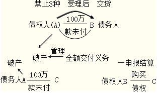 【举例】A企业欠B企业20万元,后A企业被人民法院受理破产申请;C企业与债务人A企业之间也有合同的交易,C企业欠A企业20万元的货款,在破产申请受理后,C企业不可以通过取得B企业的20万元的债权与A企业进行债权债务抵销。