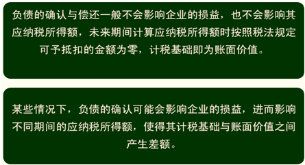 其他负债如企业应交的罚款和滞纳金等,在尚未支付之前按照会计规定确认为费用,同时作为负债反映。税法规定,罚款和滞纳金不能税前扣除,即该部分费用无论是在发生当期还是在以后期间均不允许税前扣除,其计税基础为账面价值减去未来期间计税时可予税前扣除的金额零之间的差额,即计税基础等于账面价值。