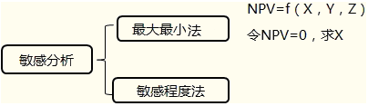 敏感分析通常是假定其他变量不变的情况下,测定某一个变量发生特定变化时对净现值(或内含报酬率)的影响。