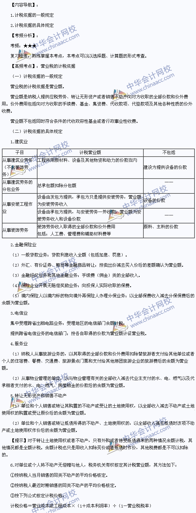 我们一起来学习2014年注册会计师《税法》高频考点:营业税的计税依据。本考点属于《税法》第四章营业税法第三节计税依据的内容。