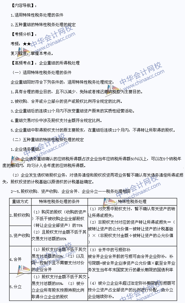 我们一起来学习2014年注册会计师《税法》高频考点:企业重组的所得税处理。本考点属于《税法》第十章企业所得税法第五节企业重组的所得税处理的内容。