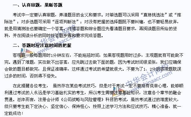 好的应试技巧可以让注会考生临场时快速而准确地抓取考分,不但节约了时间,准确率也提高,而且在某些情况下,例如遇到自己没掌握的知识点时,也能通过某些应试技巧而正确答题获得分数。《公司战略与风险管理》科目的考试中,考生应该注意两个方面。