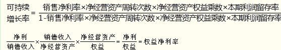 =(销售净利率×资产周转率×权益乘数×收益留存率)/(1-销售净利率×资产周转率×权益乘数×收益留存率)