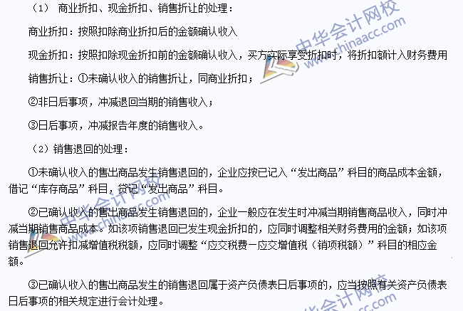 商业折扣、现金折扣、销售折让和销售退回的处理: