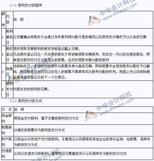 股利支付的程序和方式: