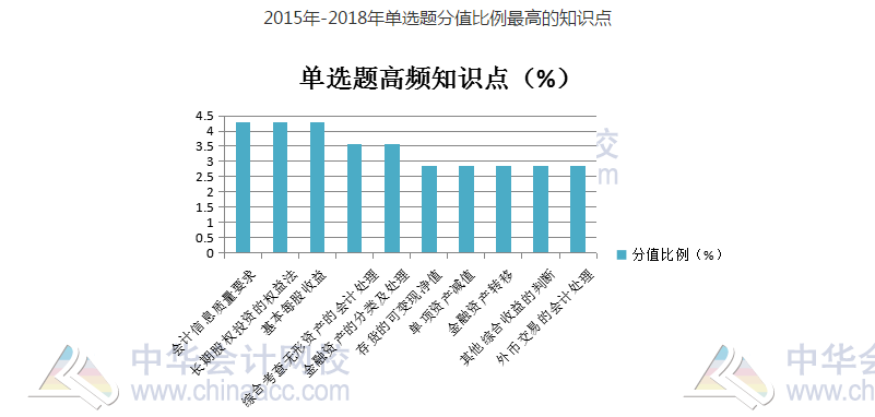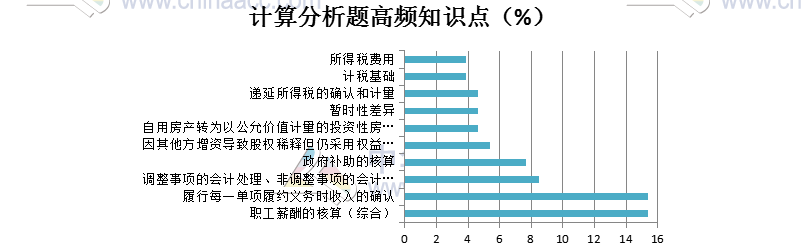 近四年计算分析题共涉及21个知识点,最多的10个知识点如下表所示,这10个知识点占到了单选总得分的73.85%