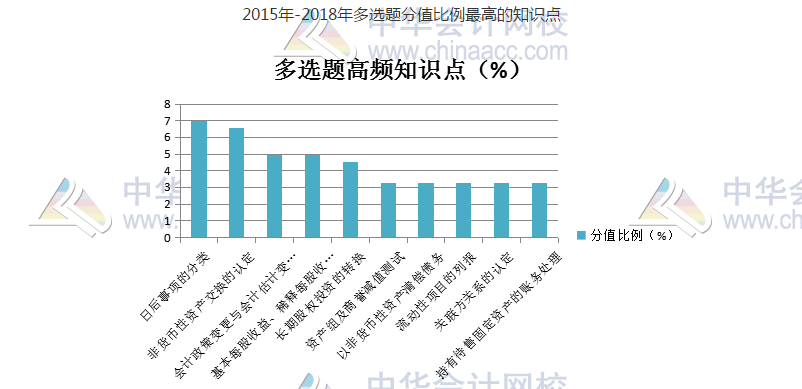近四年多选题共涉及49个知识点,最多的10个知识点如下表所示,这10个知识点占到了单选总得分的44.26%