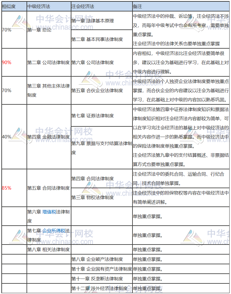 通过以上表格对比,我们不难发现,中级经济法和注会经济法相通之处还是有很多的,学习了中级经济法的基础上再学注会经济法的话,学习任务立马减轻了一大半呢,我们需要额外再重点学习一下破产法的内容,虽然注会经济法后三章的内容在中级经济法中不涉及,但是后三章的内容也不是我们注会经济法的考试重点,不需要我们花大精力去学习。