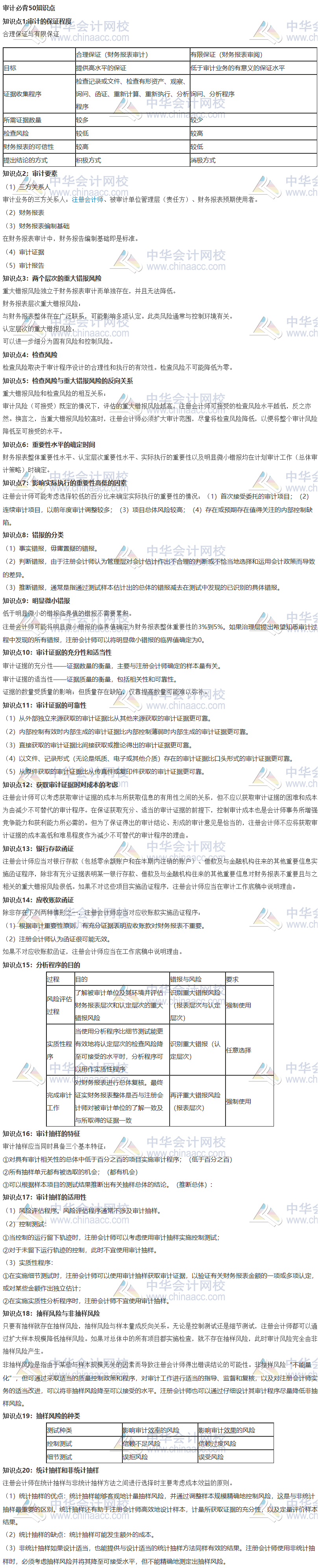 注会审计必背的50个考点