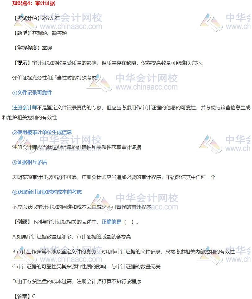 注会考前必看狂背版讲义—审计50个必背的知识点
