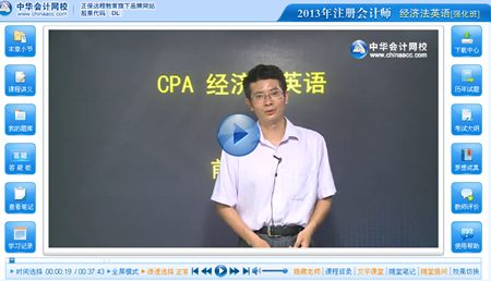 正保会计网校2013年注册会计师考试辅导经济法英语班免费试听课程已经开通!为了提升学员的听课感受,正保会计网校依托强大的技术团队,引领网络教育潮流,强力推出高清视频课件,让学员更清晰、更生动、更真实地学习知识,达到身临其境的教学效果。以下是网校老师丁宇峰2013年注册会计师考试经济法英语班免费高清视频课程: