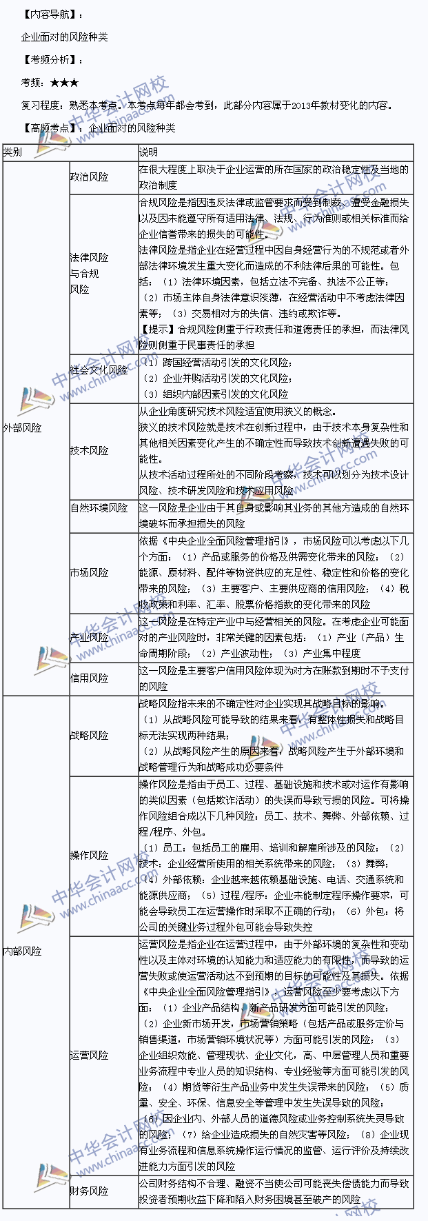 我们一起来学习2013注册会计师考试《公司战略与风险管理》高频考点:企业面对的风险种类。本考点属于《公司战略与风险管理》第五章风险与风险管理第一节风险概述的内容。