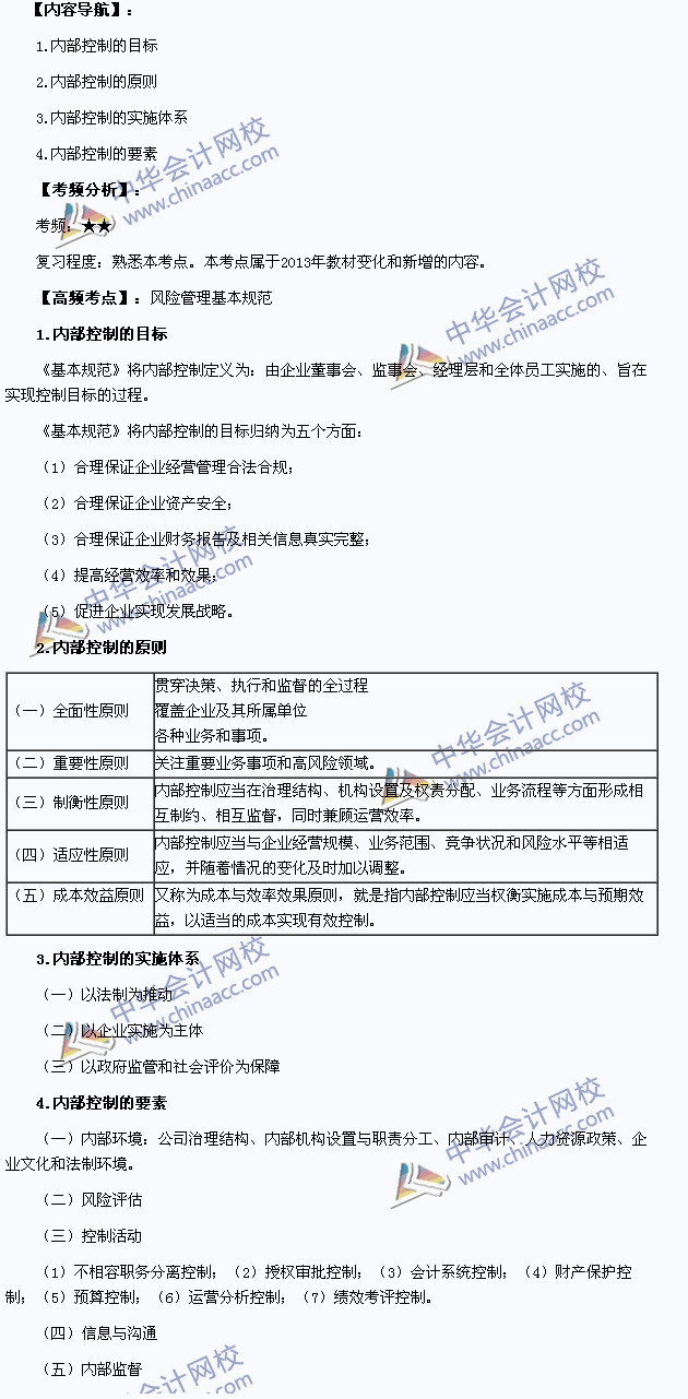 我们一起来学习2013注册会计师考试《公司战略与风险管理》高频考点:风险管理基本规范。本考点属于《公司战略与风险管理》第六章风险管理框架下的内部控制第三节内部控制基本规范的内容。