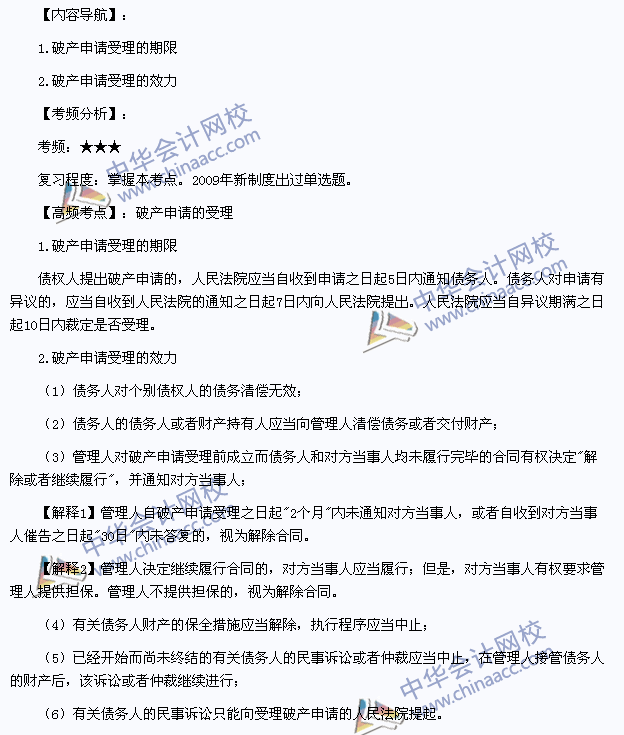 我们一起来学习2013注册会计师考试《经济法》高频考点:破产申请的受理。本考点属于《经济法》第七章企业破产法律制度第二节破产申请与受理的内容。
